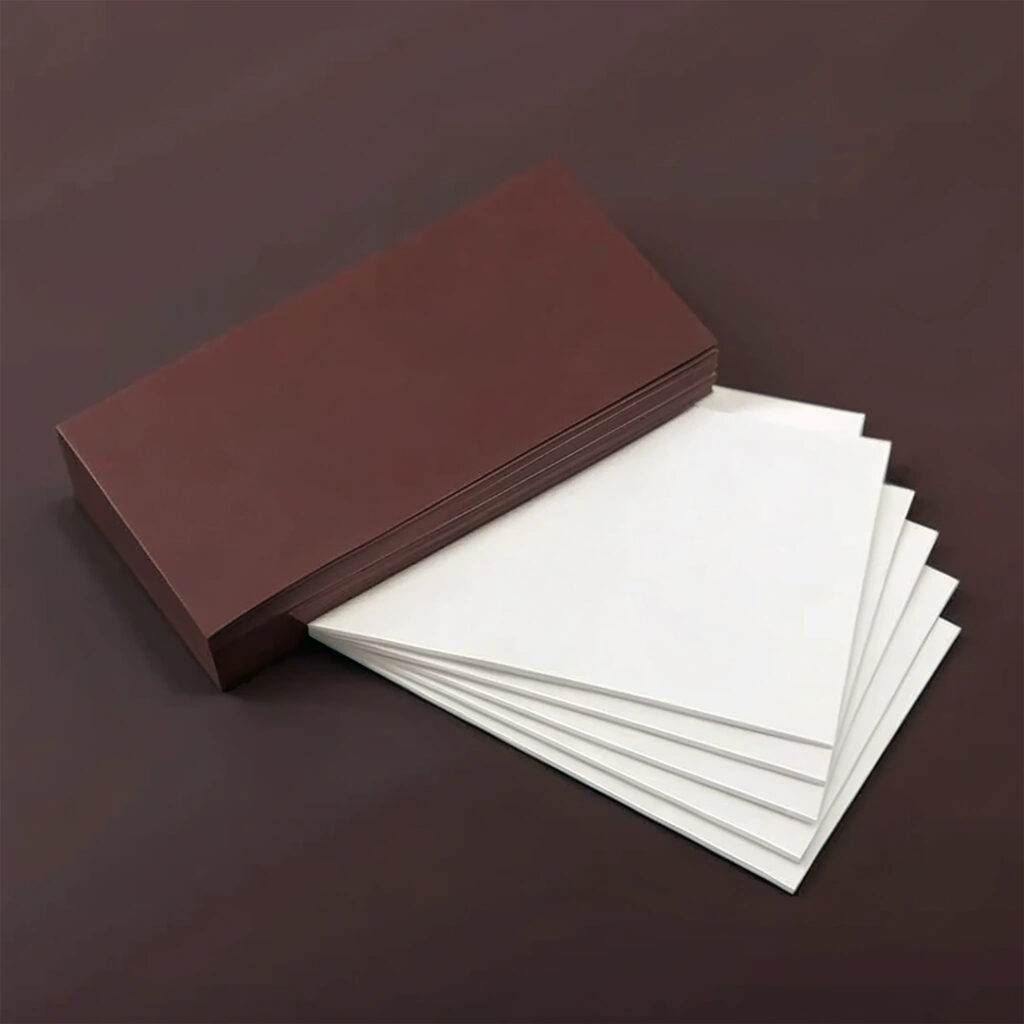 High-quality, stiff board available in white and various colors. Used for presentations, art projects, and high-end packaging.